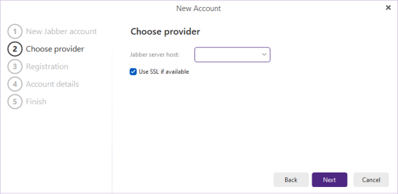 Since the Jabber protocol is hosted by decentralized servers much like IRC, you will be asked to select a host server to connect to.