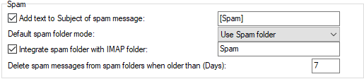 The Action tab allows you to define what actions should be taken according to the Spam score.