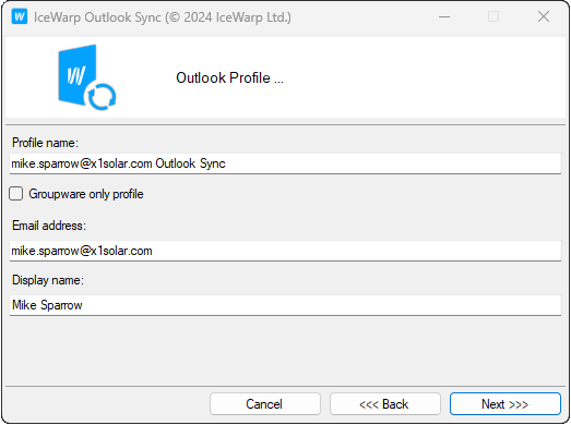 Fill in the profile properties, fill in the profile name, your email address and also a display name for Outlook.