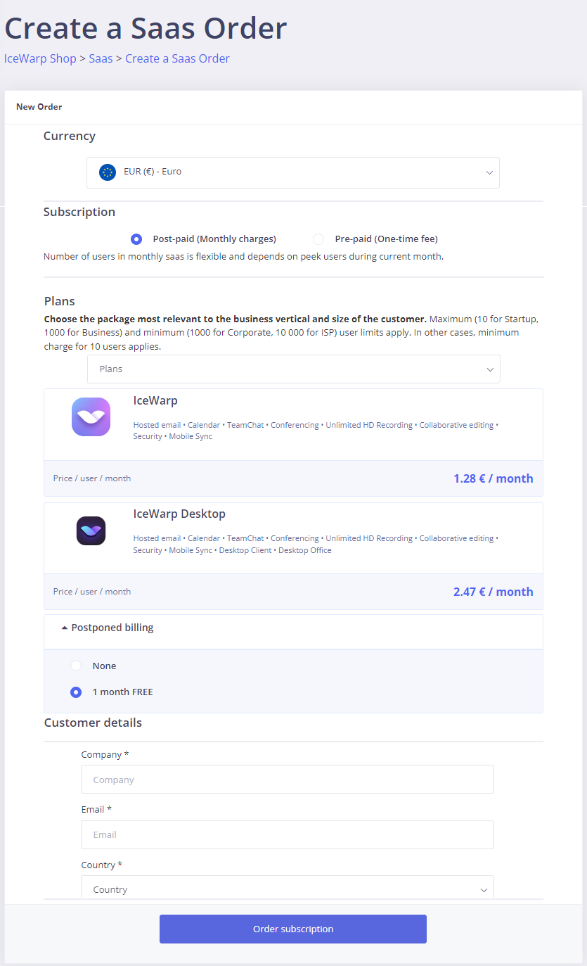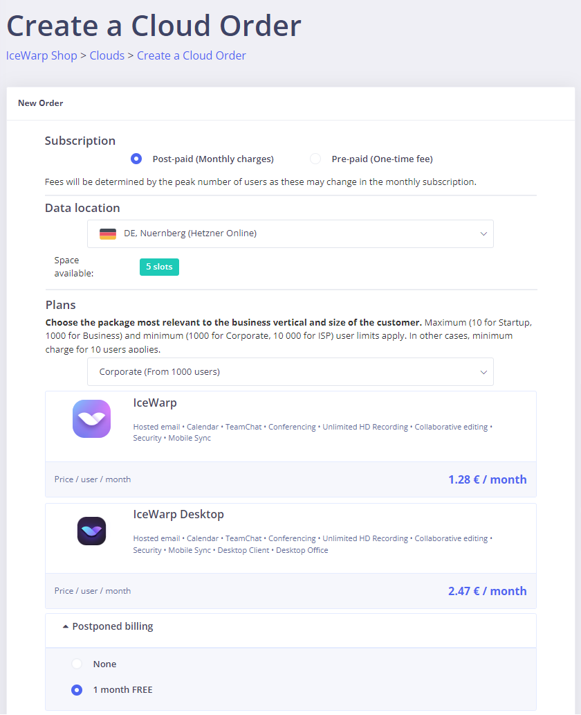 Post-paid: you will be charged for the maximum quantity of user accounts you registered during the past month.