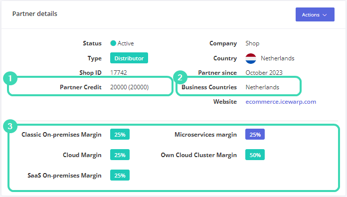 In the Partner details section, you can see your type of contract: distributor or reseller, shop ID, name of the company, country of registration, etc.